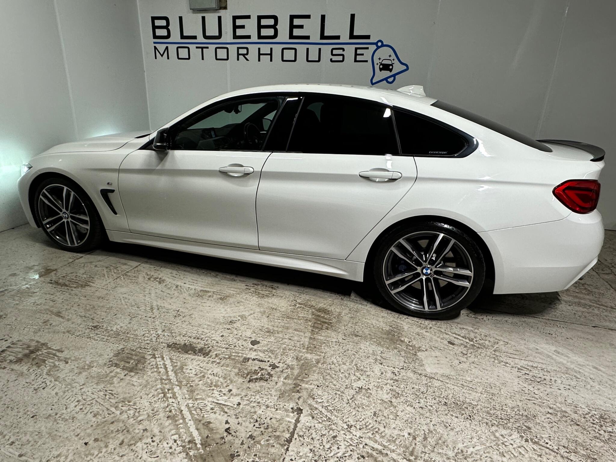 Bluebell Motorhouse is proud to present to you a fantastic example of this BMW 4 Series Gran Coupe 3.0 430d M Sport Auto xDrive. Whichever way you look at it, it is the Perfect all round family saloon or it can even be an evil torquey 3.0L grand tourer, but whatever the occasion, its the ideal car for anyone looking to buy one of BMW's Greatest Hits. The 3.0 Straight Six Turbocharged 250+ BHP Engine with upwards of 550 NM of Torque is handled efficiently by the 8 Speed Automatic ZF Gearbox. This BMW offers an incredible amount of options from factory, some of which include Foot operated and electrically controlled boot release, Wireless charging, BMW Adaptive LED Headlights with High Beam Assist, Front and Rear Parking Sensors, Heated Front Seats, Tri-Zone Climatized Air Control, Automatic Headlights and Rain Sensing Wipers, Professional BMW Media with Satellite Navigation, DAB with Radio CD Player, Bluetooth, Electric Front and Rear Windows, Electric Folding Mirrors, Keyless Entry, HK sound system, Electric Front seats with Driver memory, USB/AUX, Touch Screen 8.8 Inch Screen with Multiple features, Keyless entry, Push button start and much more! This vehicle also has FULL Service History! (10 Services in total). The current MOT expires on 29/06/2026 and it also has 2 keys. The car is finished in the Manufacturer colour of Alpine White Metallic with Dakota Leather seats and 19 inch alloy wheels. This car is in excellent condition throughout, some very light marks and chips around the car but as can be expected. It starts and drives very well. 3 Months In House Warranty included with basic AA 12 months Breakdown Cover which can be extended to the UK's only Trading Standards approved warranty, administered by The Motoring Organisation-subject to terms and conditions, with more info directly on our website under the warranty section. **MOT AND SERVICE WILL BE PROVIDED** Low interest finance available